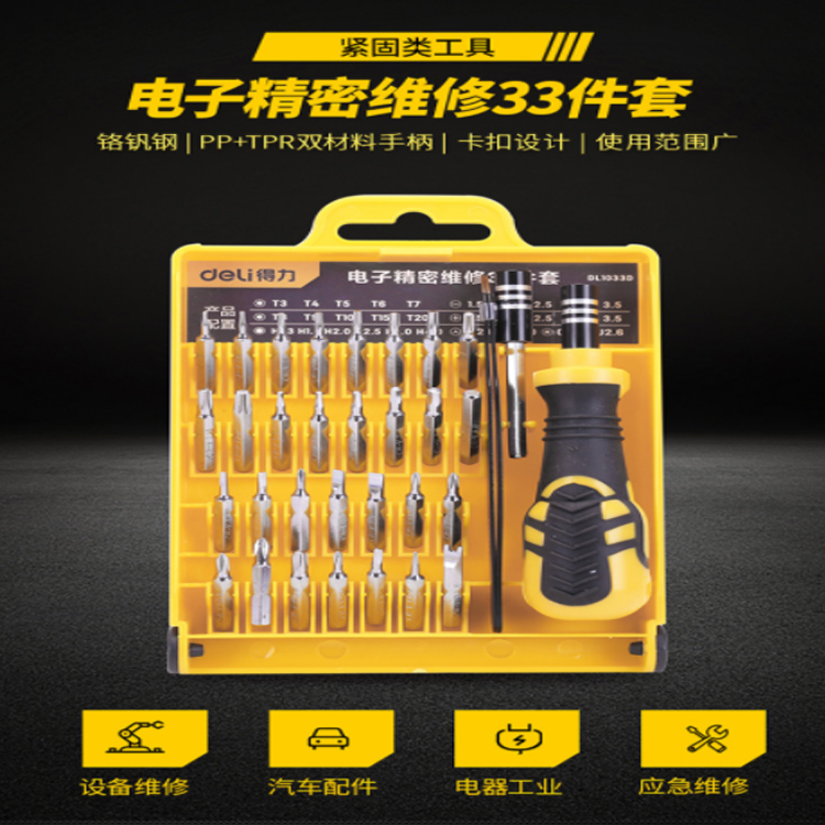 得力(deli) 多功能精密維修電子螺絲批組套33件起子套裝 DL1033D