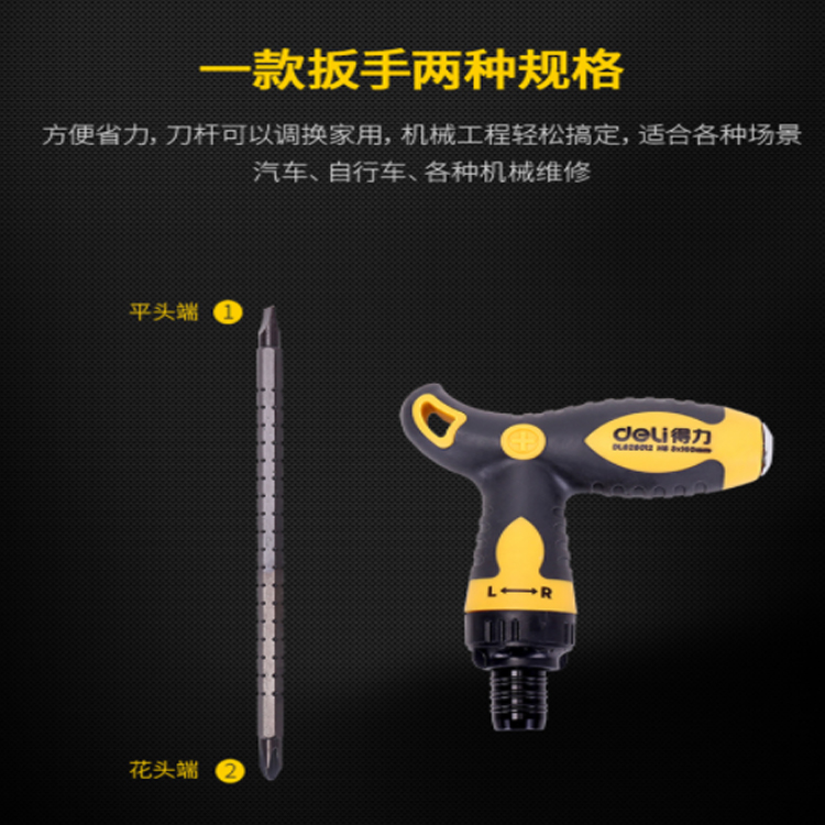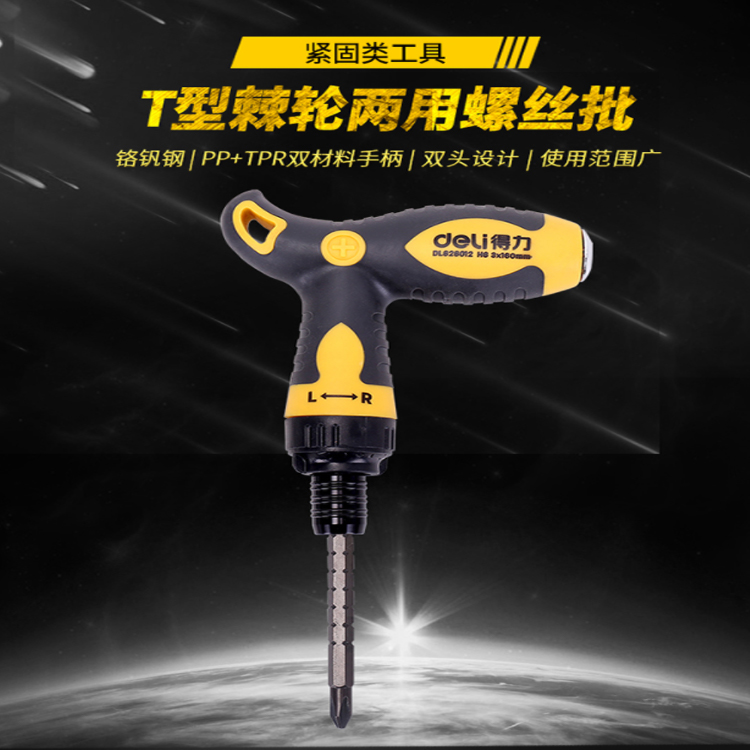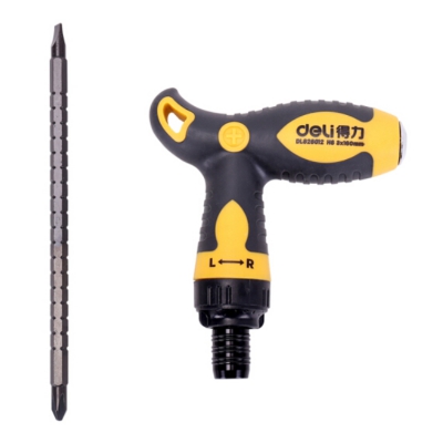 得力(deli) 多功能雙向T型伸縮棘輪兩用螺絲刀鉻釩鋼省力螺絲批一十字起子改錐