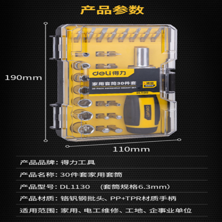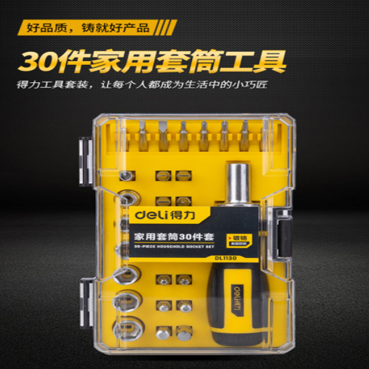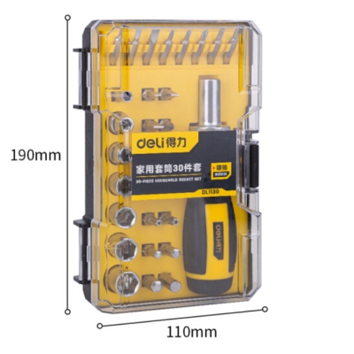 得力(deli) 棘輪螺絲刀組套家用套筒套裝螺絲批組套30件套 DL113030件家用套筒工