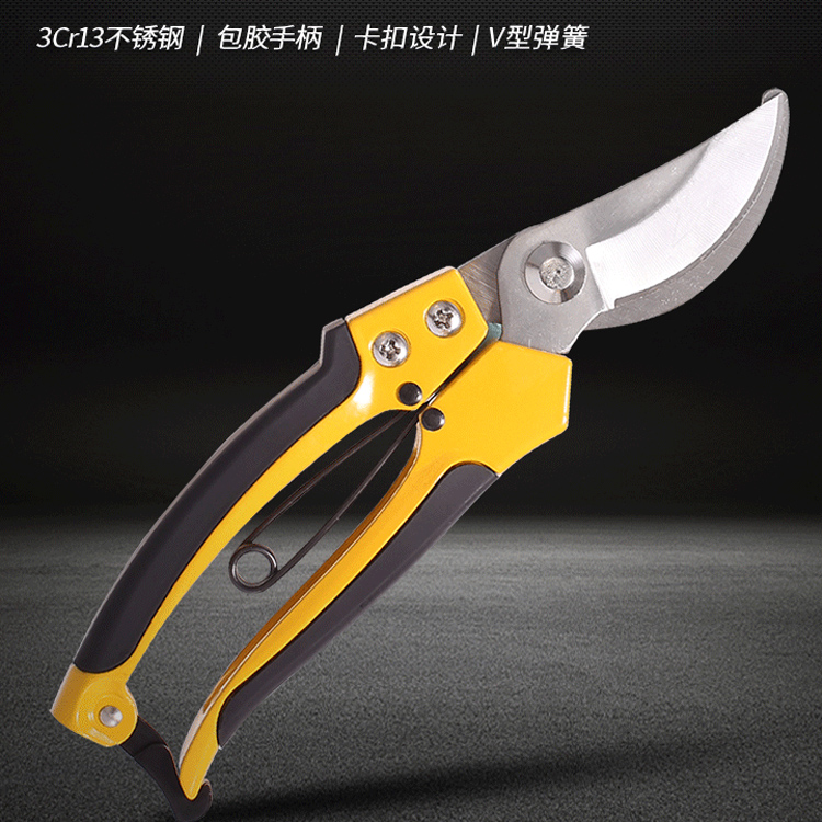 花木剪3Cr13不銹鋼、包膠手柄、卡扣設(shè)計
