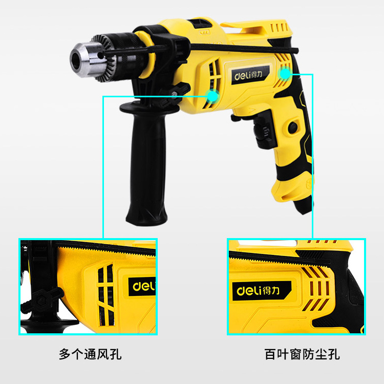 得力工具一機(jī)三用沖擊電鉆強(qiáng)勁動(dòng)力多功能大功率多孔散熱沖鉆兩用