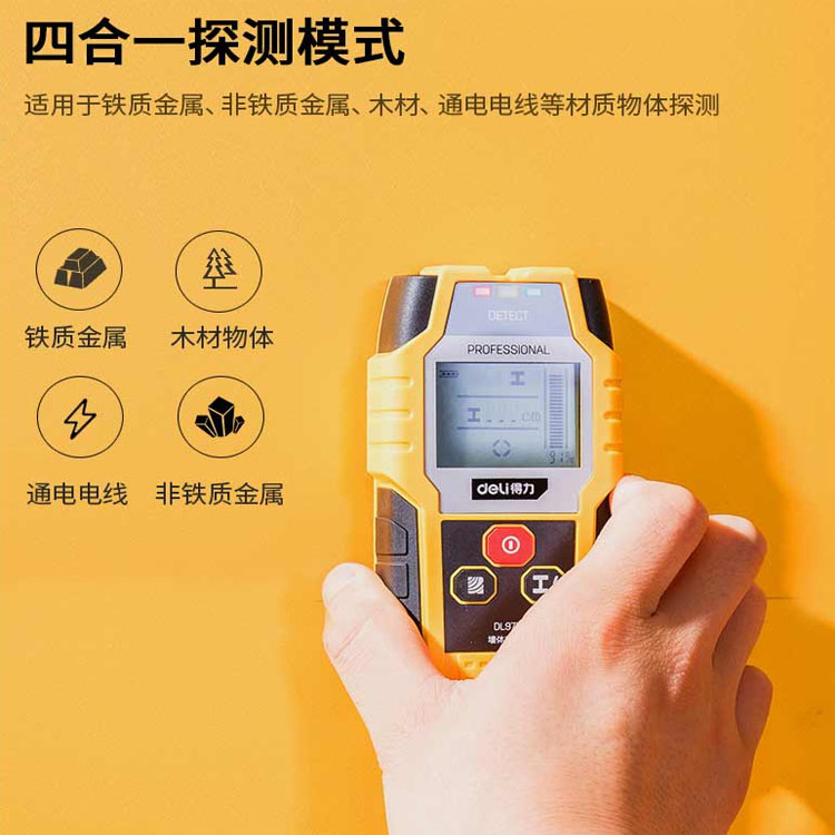 得力多功能墻壁墻體探測(cè)儀墻內(nèi)測(cè)鋼筋電線木龍骨金屬檢測(cè)器