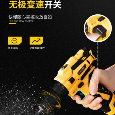 得力鋰電鉆充電式手鉆鋰電槍鉆多功能家用雙速電動(dòng)螺絲手電鉆沖擊