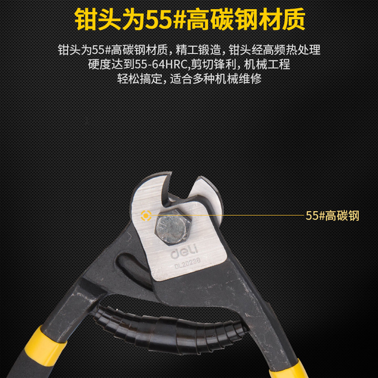 鋼絲繩剪鉗頭為55#高碳鋼材質(zhì),精工鍛造,鉗頭經(jīng)高頻熱處理,剪切鋒利