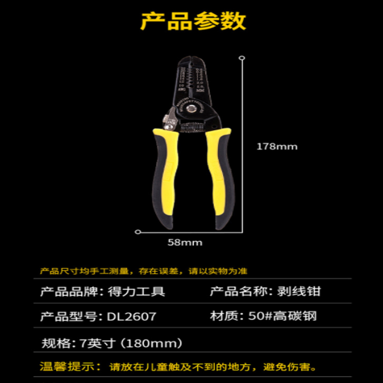 得力(deli) 高碳鋼帶刃口7檔多功能輕便電工剝線鉗電子電工手動(dòng)工具0.6-2.6mm DL2607