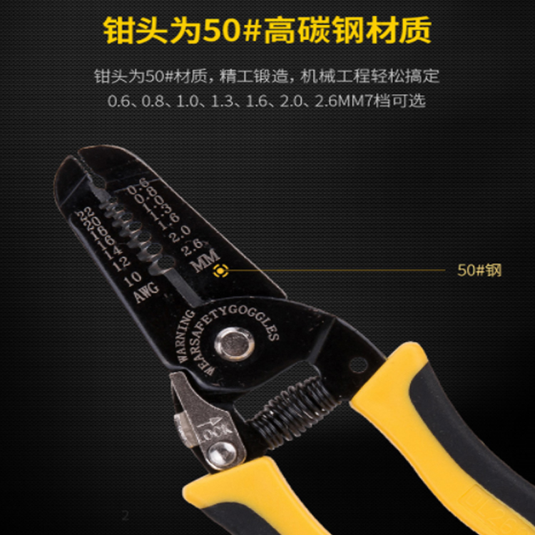 得力(deli) 高碳鋼帶刃口7檔多功能輕便電工剝線鉗電子電工手動(dòng)工具0.6-2.6mm