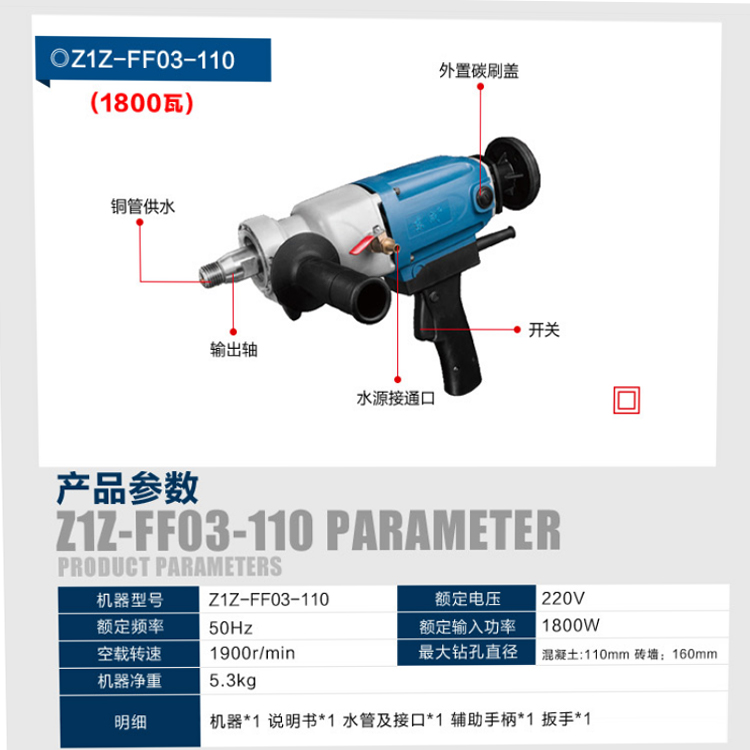 東成金剛石鉆孔機(jī)Z1Z-FF03-110 銅管供水無(wú)水封款銅管供水,