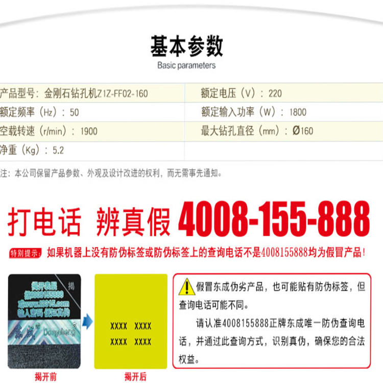 東成金剛石鉆孔機(jī)Z1Z-FF02-160全銅電機(jī) 強(qiáng)大功率 有效散熱