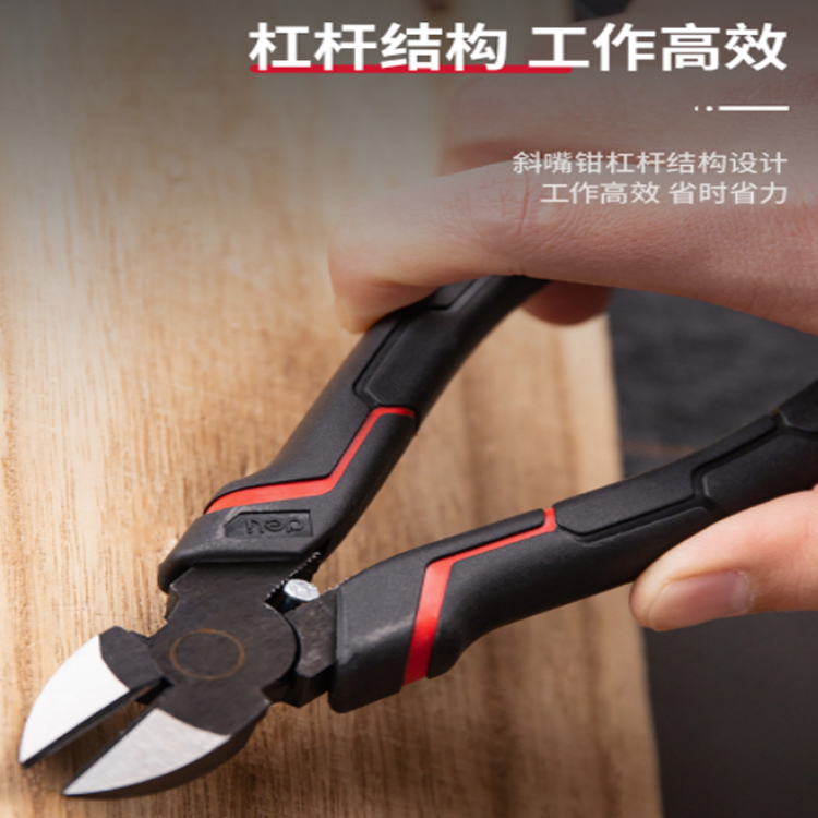 斜嘴鉗桿結(jié)構(gòu)設(shè)計(jì),工作高效,省時(shí)省力,TPR雙色手柄,握感舒適,耐磨防滑