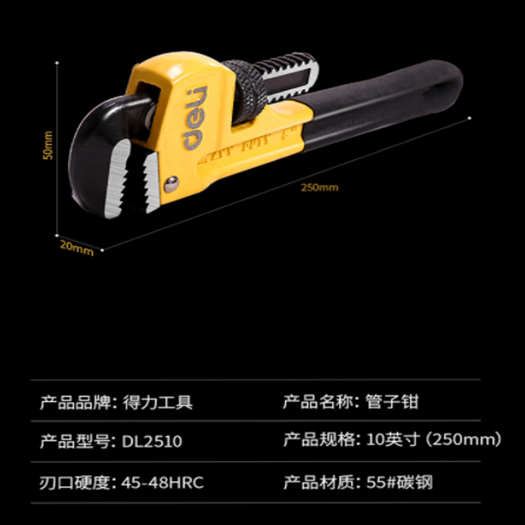得力(deli) 重型管子鉗管道鉗水管鉗水泵鉗10英寸 DL2510采用55#碳鋼精工鍛