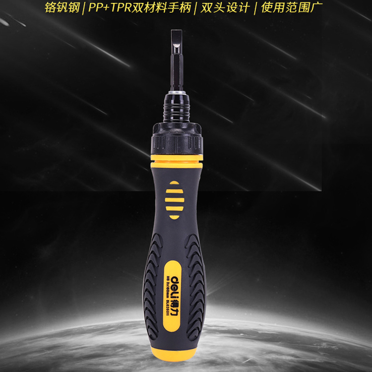 得力伸縮棘輪螺絲刀批兩用快速伸縮雙頭雙向十字一字起子改錐家用