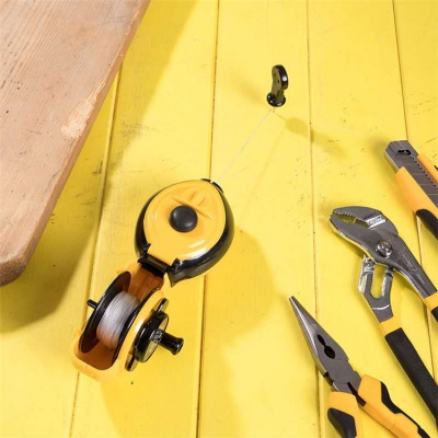 把墨斗繞線(xiàn)把手對(duì)面的突出部分往里推,取下繞線(xiàn)把手便可將線(xiàn)圈筒向上取出