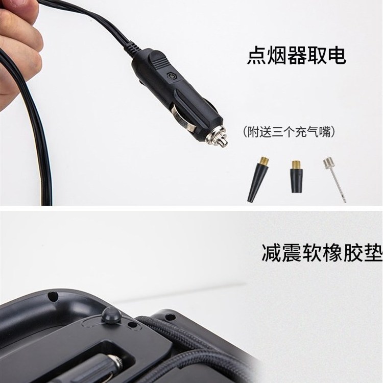 車載充氣泵藍(lán)色熒光顯示屏,提手設(shè)計,方便攜帶。