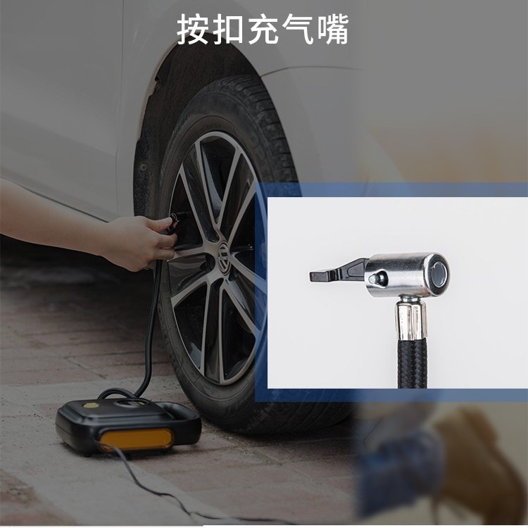 充氣泵按扣充氣嘴,體積小巧,可便攜放置,預(yù)設(shè)胎壓,自動沖停。