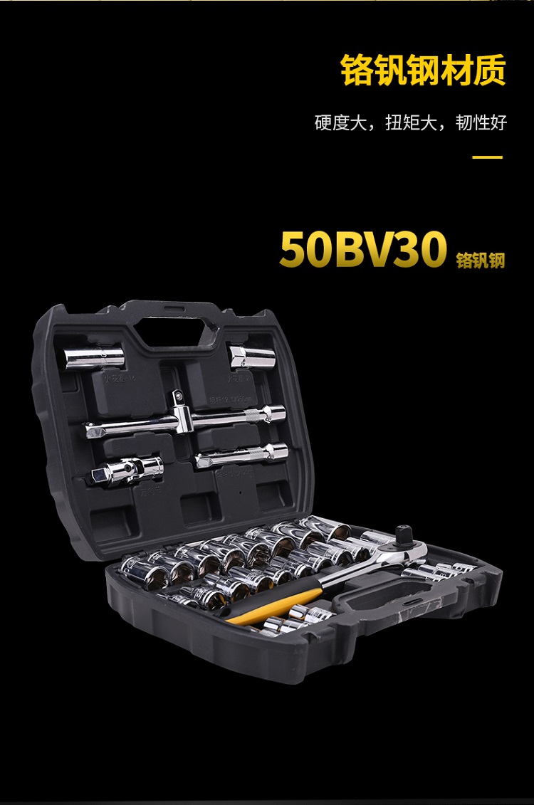 汽車(chē)維修機(jī)修工具采用鉻釩鋼材質(zhì),硬度大,扭矩大,韌性好