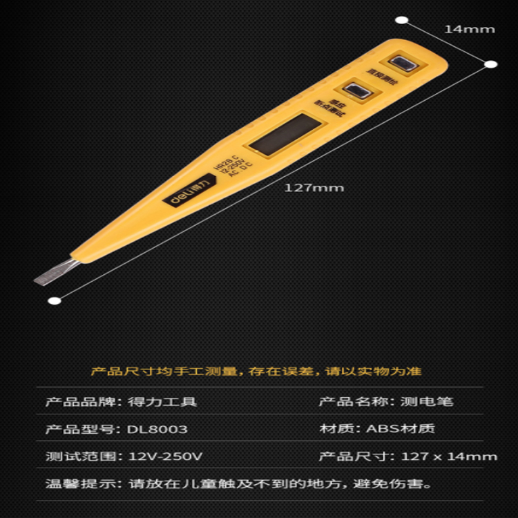 得力(deli) 數(shù)顯測電筆試電筆驗電筆電工筆電工螺絲刀12-250V DL8003安全耐用