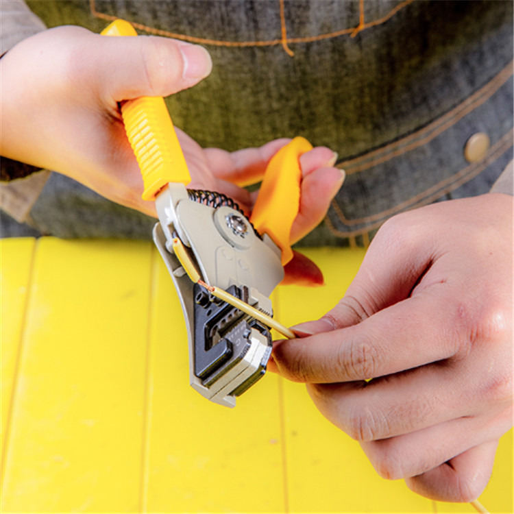 得力自動(dòng)剝線鉗電工多功能產(chǎn)品鉗口采用鋅合金,刀片采用65Mn鋼,產(chǎn)品表面噴塑處理。