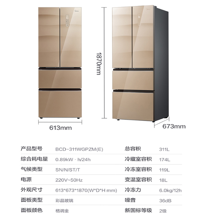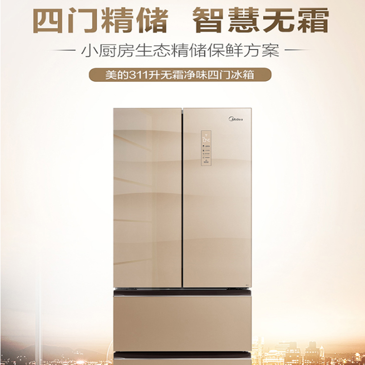 美的(Midea)311升 多門智能家用冰箱抗菌保鮮冷藏冷凍玻璃面板變頻無霜分區(qū)