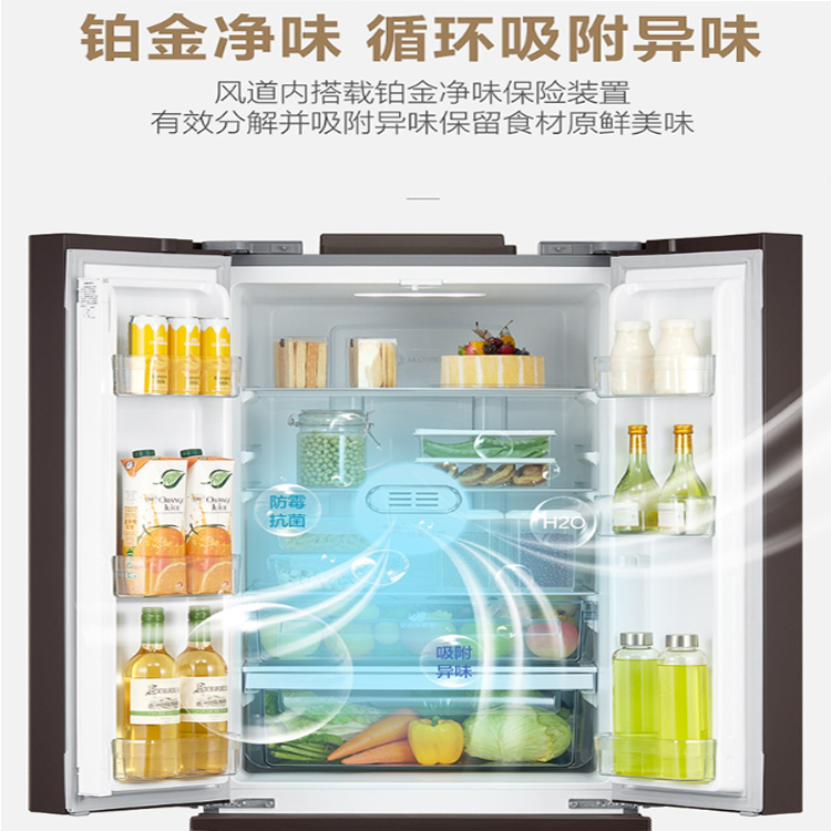 美的多門智能家用冰箱內(nèi)設(shè)鉑金凈味保險裝置,吸附異味保留食材原味。
