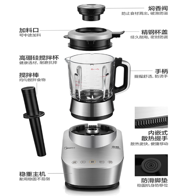 美的靜音破壁料理機雙重防溢出,免看管,帶有自動感應(yīng)防溢環(huán)。