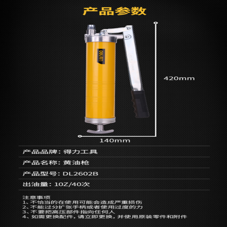 得力(deli) 900CC高壓手動(dòng)省力黃油槍牛油槍高壓注油器7000psi DL2602B
