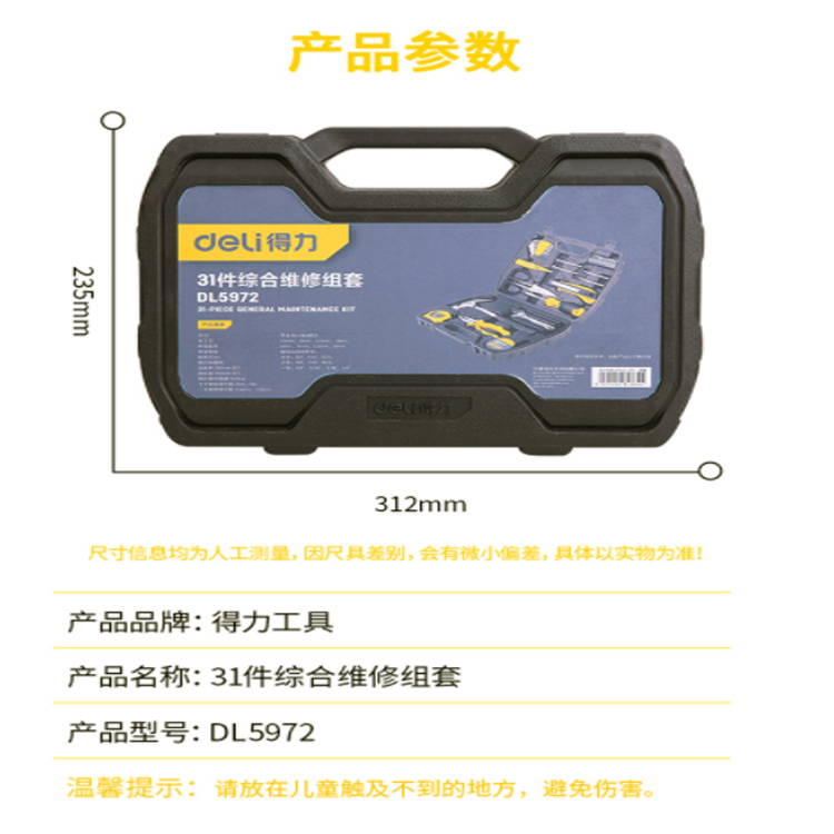 得力(deli) 家用工具箱套裝 電工木工維修五金手動工具組套31件套 DL5972