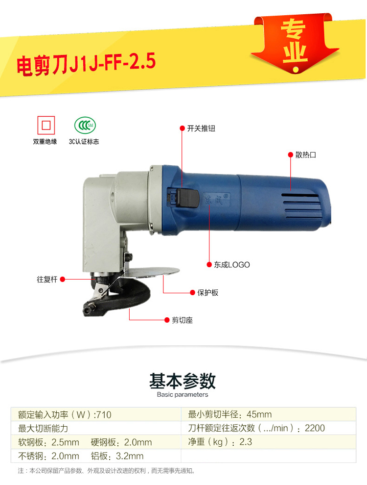 東成 J1J-FF-3.2專業(yè)剪切軟鋼板和不銹鋼電剪刀主要結(jié)構(gòu)展示,各項(xiàng)基本參數(shù)展示