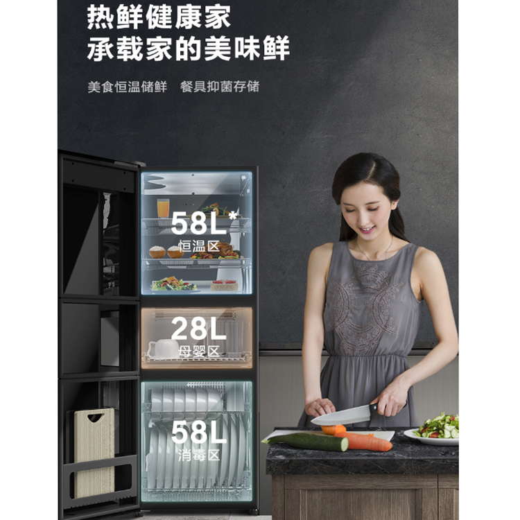 美的立式殺菌消毒柜分區(qū)設(shè)計(jì),飯菜放進(jìn)保溫區(qū),隨時(shí)享用美味。