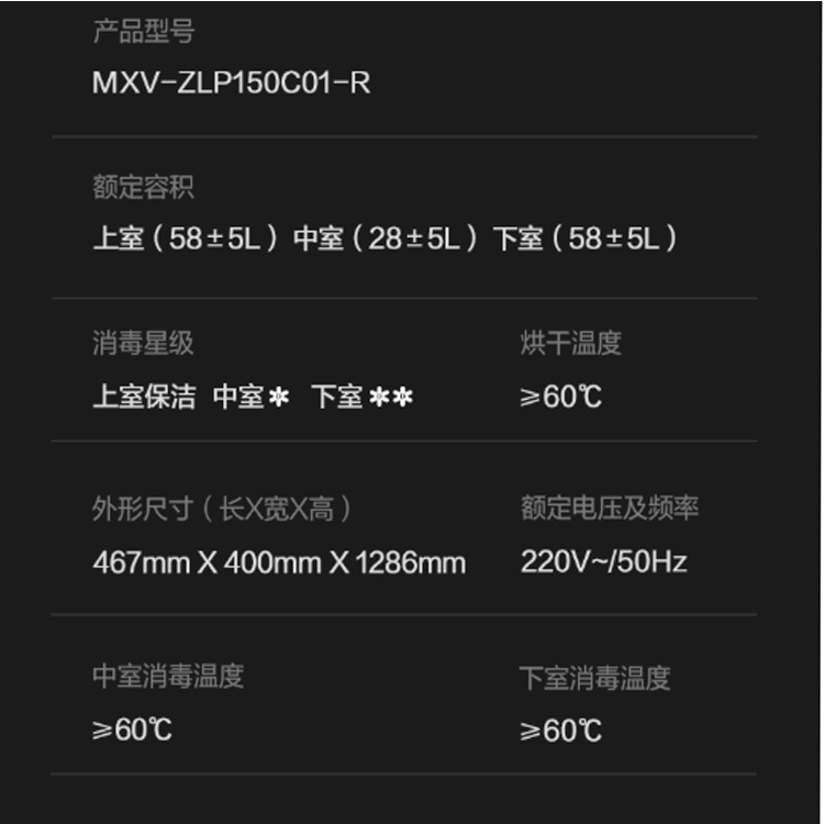 - 型號(hào)名稱MXV-ZlP150C01-R?消毒柜