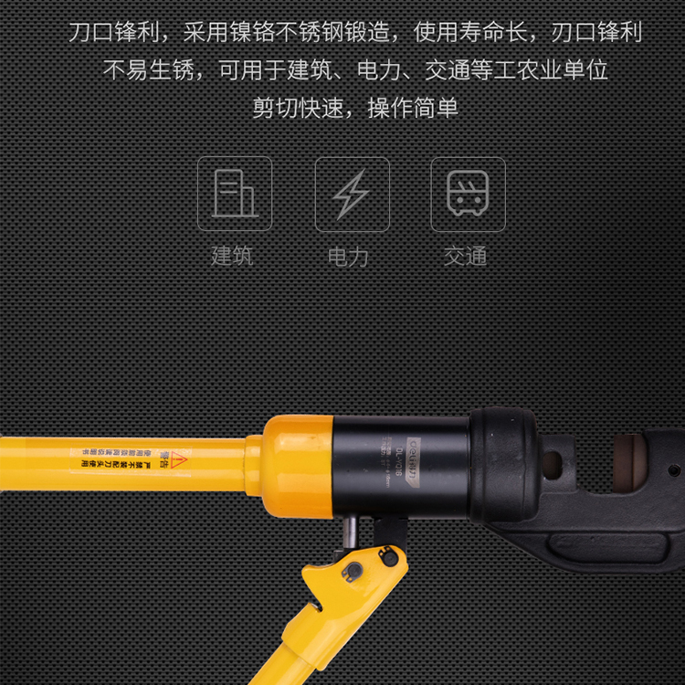 得力液壓剪刀剪鋼筋DL-YQ16電纜阻力斷鉗手動(dòng)液壓鉗,旋轉(zhuǎn)式拉出金屬棒,把壓接模具順著凹槽推進(jìn)去,金屬棒歸為,完成替換。