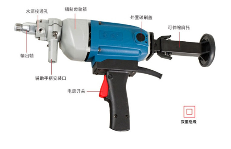 高強(qiáng)度輸出軸,連接水鉆鉆頭,帶濕作業(yè),環(huán)保安全減少粉塵飛濺