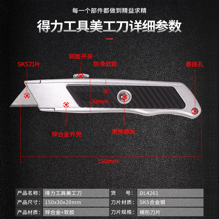 得力重型自鎖鋅合金美工刀T型美工刀片DL4283裁紙刀地毯刀DL4261,