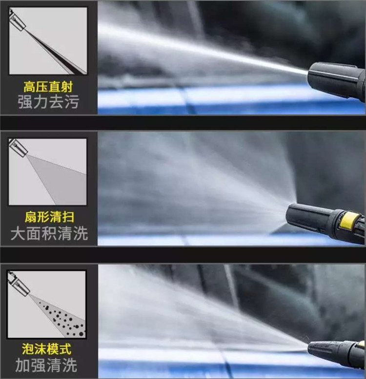 清洗器可旋轉(zhuǎn)槍頭調(diào)整水型模式 可大面積清洗、強力去污、加強清洗三種模式