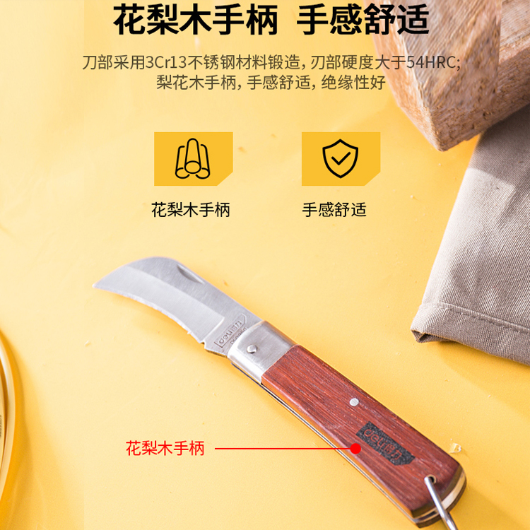 電工刀梨花木手柄,手感舒適,絕緣性好