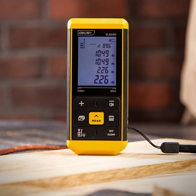 得力紅外線測距儀手持大屏鋰電激光測距儀充電高精度電子尺量房儀