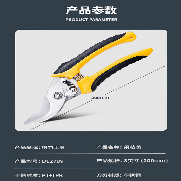 得力(deli) 高碳鋼刀頭樹枝剪開關(guān)安全鎖定功能 防止刃口對