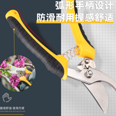得力(deli) 不銹鋼果枝剪彎嘴園林剪樹枝鉗家用修枝剪刀8英寸 DL2789