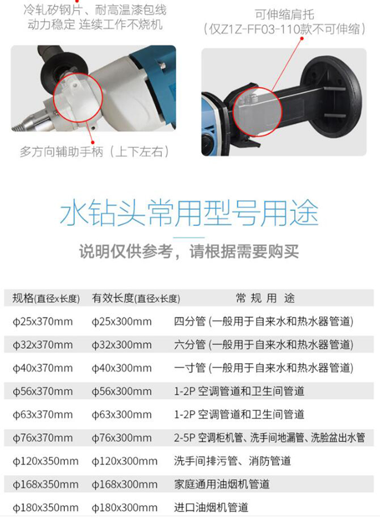 東成鋪管機(jī)(電鉆)Z1K-FF-150,根不同用途的需求,選用不同的鉆頭