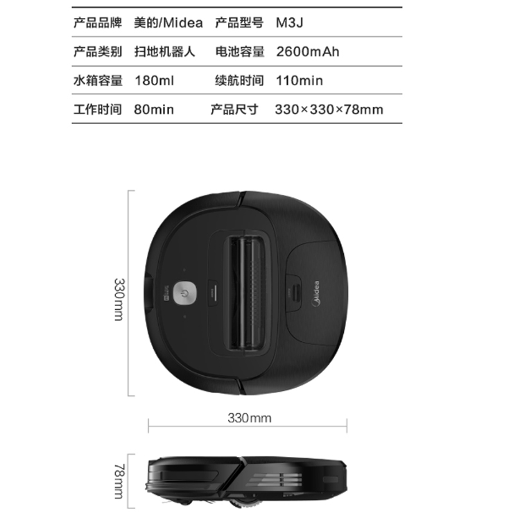 美的 M3J掃地機(jī)器人吸塵器參數(shù)