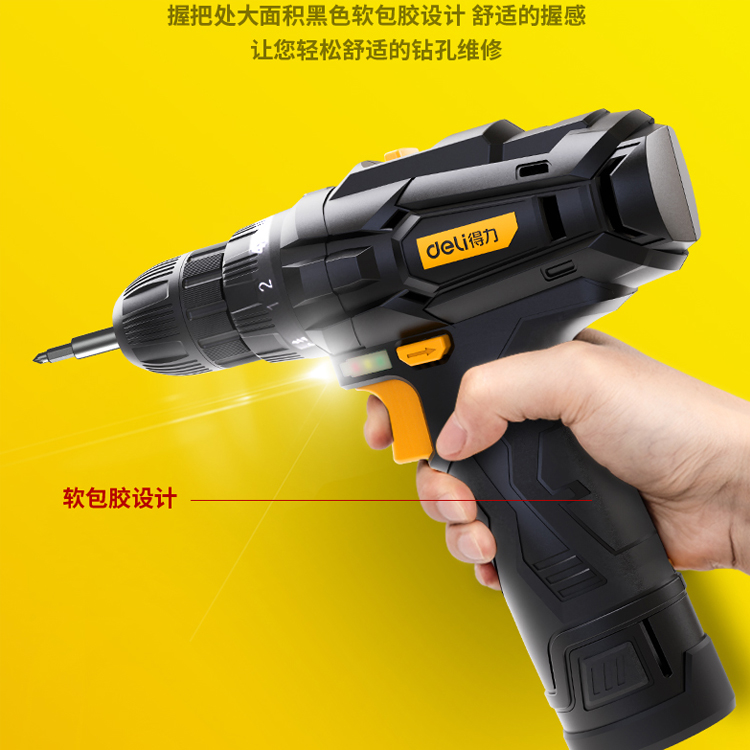 電鉆握把處大面積黑色軟包膠設(shè)計(jì),舒適的握感讓您輕松舒適的鉆孔維修
