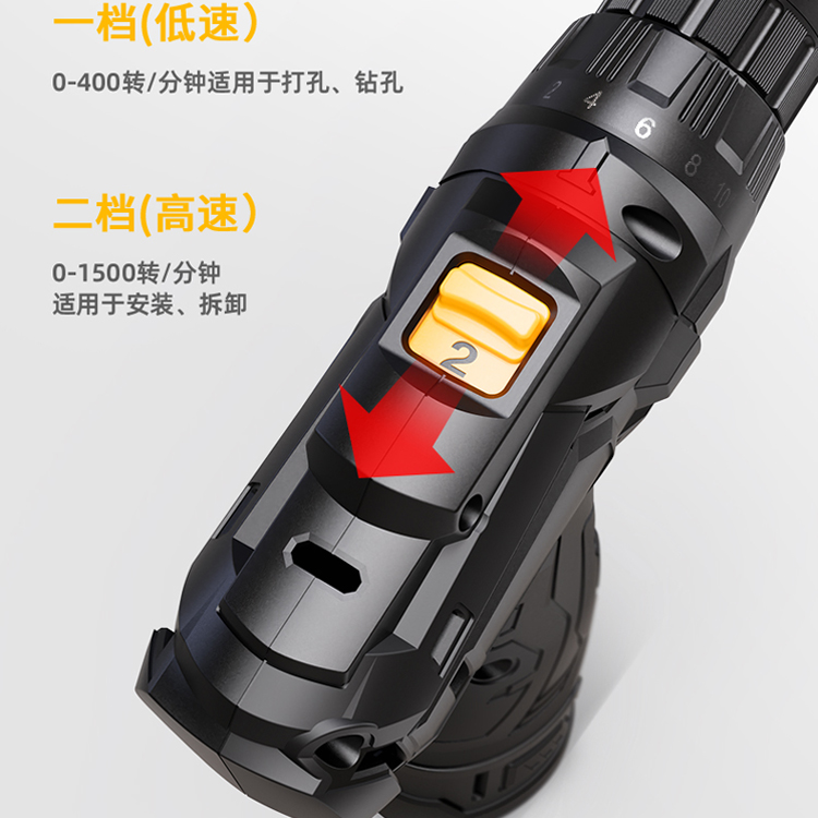 電鉆高低兩檔調(diào)速,低速適用于打孔、鉆孔,高速適用于安裝、拆卸