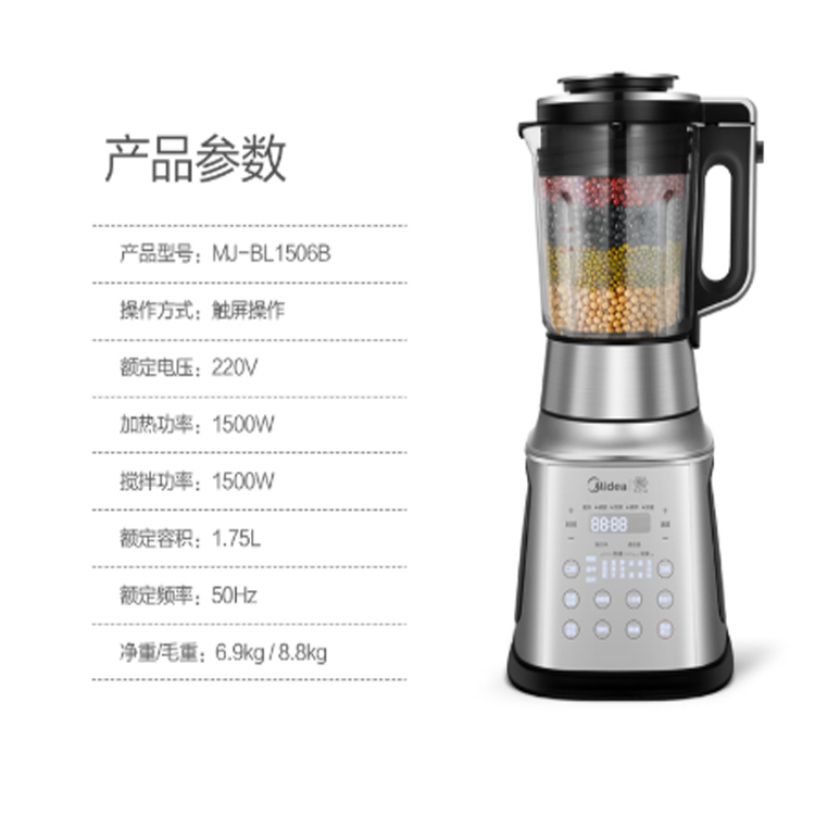 美的家用破壁機(jī)高硼硅玻璃杯,加熱熬煮更安全。