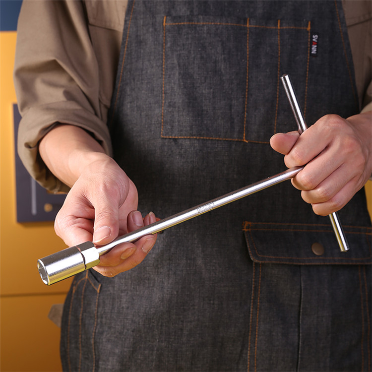 T型套筒扳手產(chǎn)品有多種規(guī)格:8mm、10mm、12mm、13mm、14mm、16mm、17mm、19mm 桿部長度24.5cm