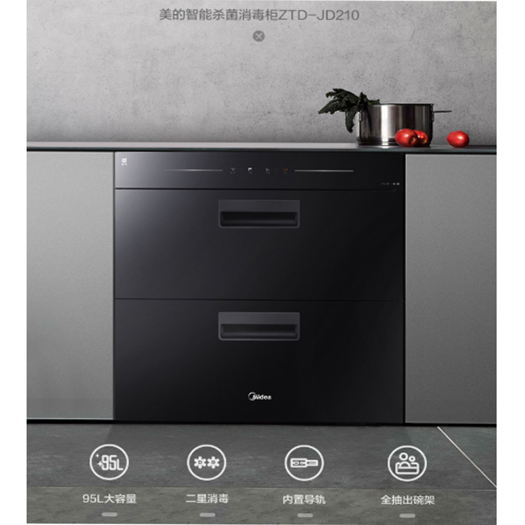 美的嵌入式消毒柜95L大容量,8人餐具都能裝。