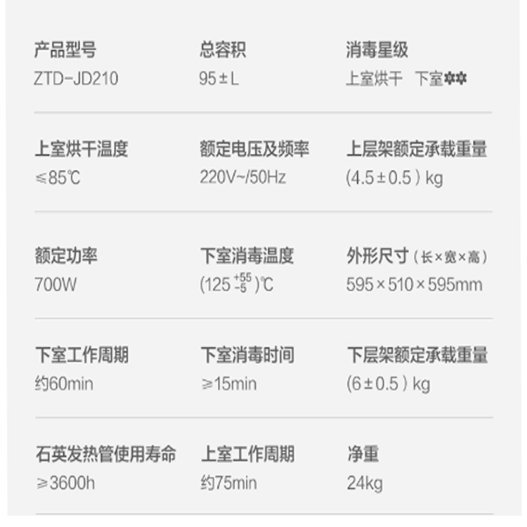 美的ZTD-JD210 嵌入式消毒柜參數(shù)
