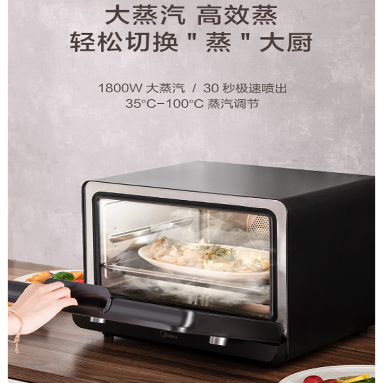 美的臺(tái)式蒸烤箱1800w大蒸汽,可以調(diào)節(jié),30秒極速噴出。