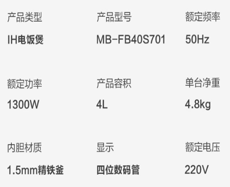 美的(Midea)電飯煲IH電磁加熱家用4升大容量智能預(yù)約多功能電飯鍋