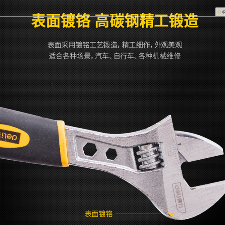 得力塑柄活扳手多功能表面鍍鉻美觀耐腐蝕,手板TPR包膠,握感舒適。