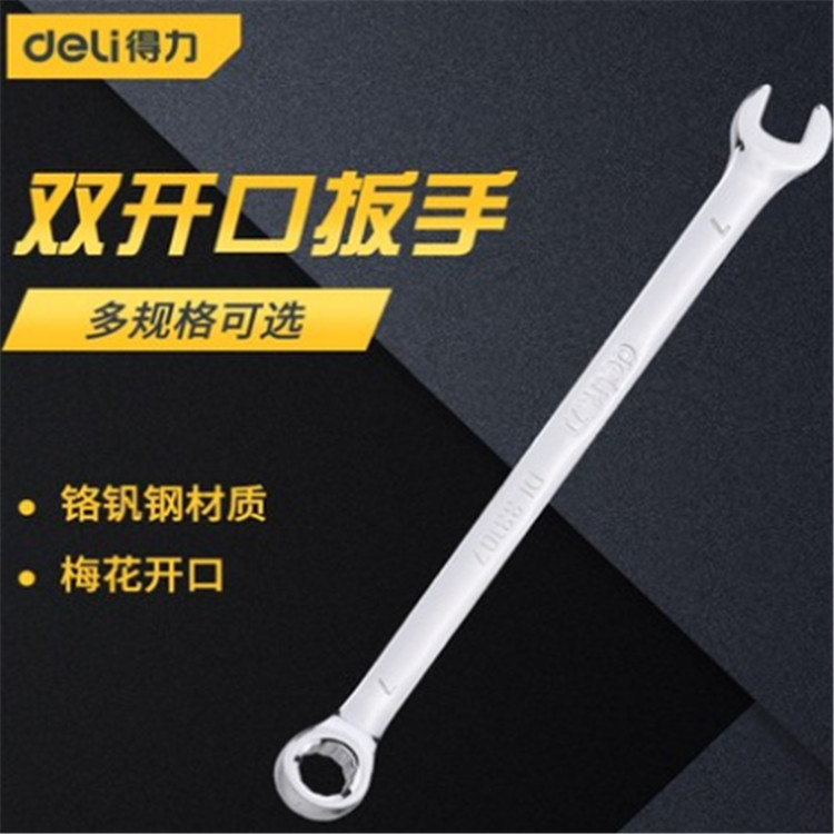 得力工具鏡面兩用扳手表面鏡面研磨后鍍鉻處理,美觀耐腐蝕。