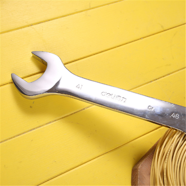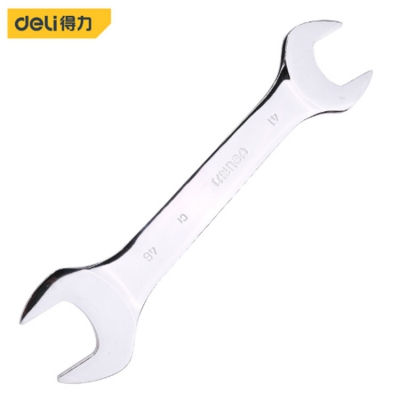 得力鏡面雙開口扳手表面鏡面研磨后鍍鉻處理,美觀耐腐蝕。